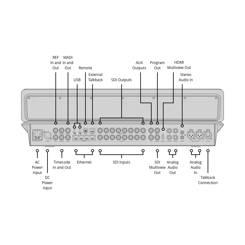 | Other I/O | 1 x BNC Reference Input 1 x BNC Reference Output 1 x BNC Timecode 1 x BNC Timecode 4 x RJ45 LAN Input/Output 1 x RJ45 Talkback Input/Output 1 x RJ12 Remote Input/Output 2 x USB-C Output |
